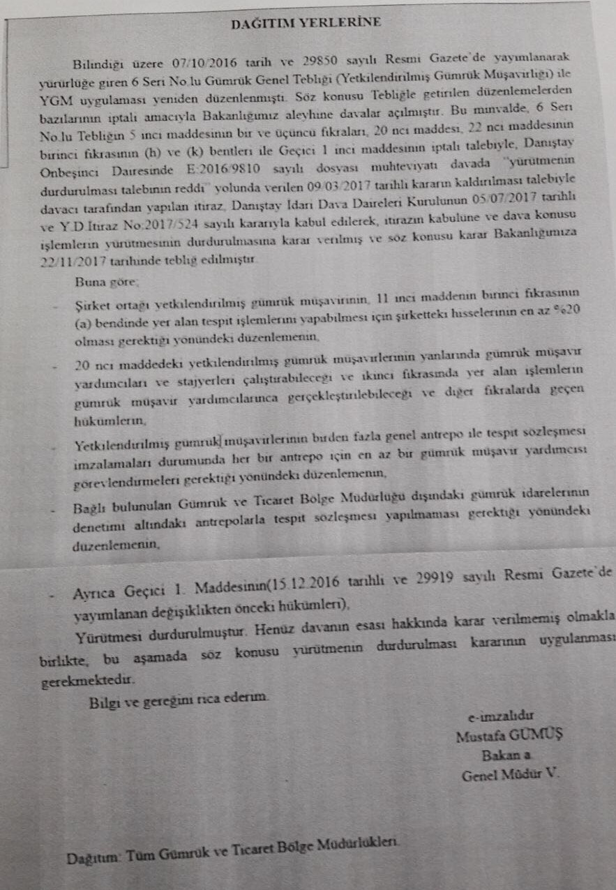 Gümrükler Genel Müdürlüğü'nün 6 Seri No.lu Gümrük Genel Tebliği'ne (Yekilendirilmiş Gümrük Müşavirliği) İlişkin Yazısı ilişikte sunulmuştur.