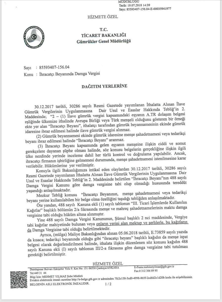 Gümrükler Genel Müdürlüğü’nün “Yatırım Teşvik Belgesi İşlemlerinde YTEMY Muafiyet Kodunun Kullanımı” konulu yazısı Devamı için tıklayın...