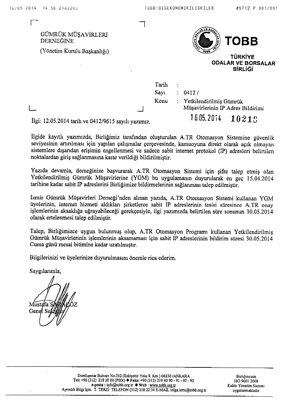 Konu ile ilgili TOBB tarafından derneğimize gelen yazı ilişikte bilgilerinize sunulmuştur.