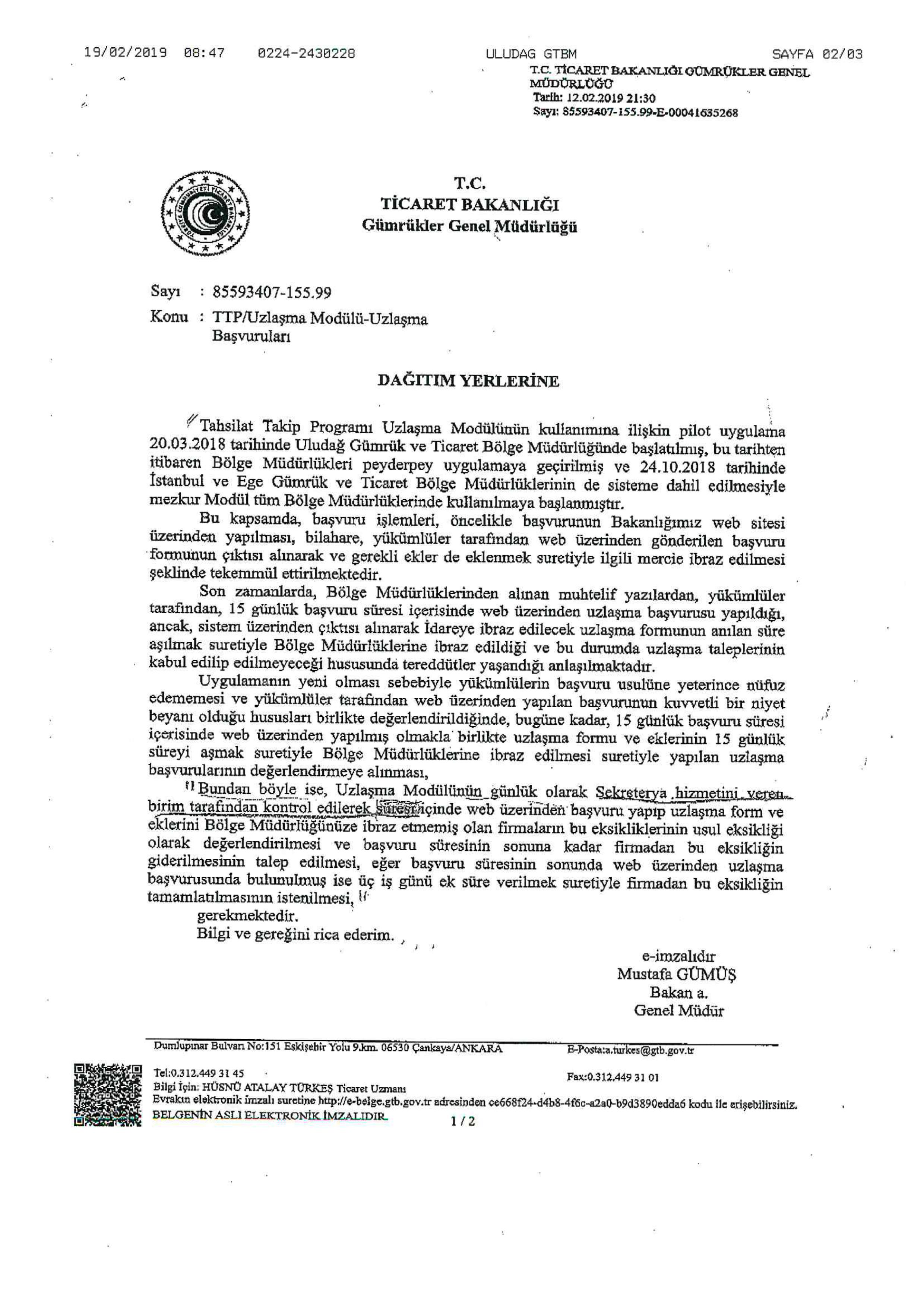 Gümrükler Genel Müdürlüğü'nün "TTP/Uzlaşma Modülü-Uzlaşma Başvuruları" konulu yazısı ilişikte bilgilerinize sunulmuştur.