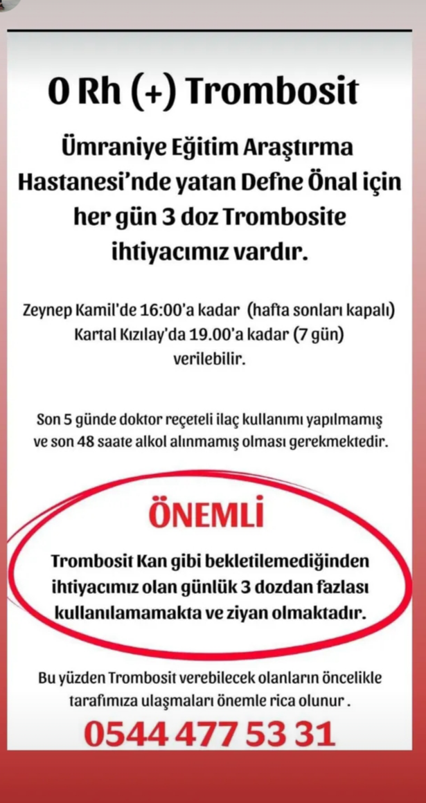 Yoğun Bakım Ünitesinde yatmakta olan bir yakını için 0 RH (+) trombosit kana