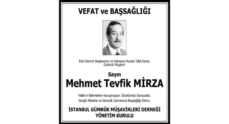 Eski Dernek Başkanımız Mehmet Tevfik MİRZA’nın Acısını Kamuoyu İle Paylaştık Devamı için tıklayın...