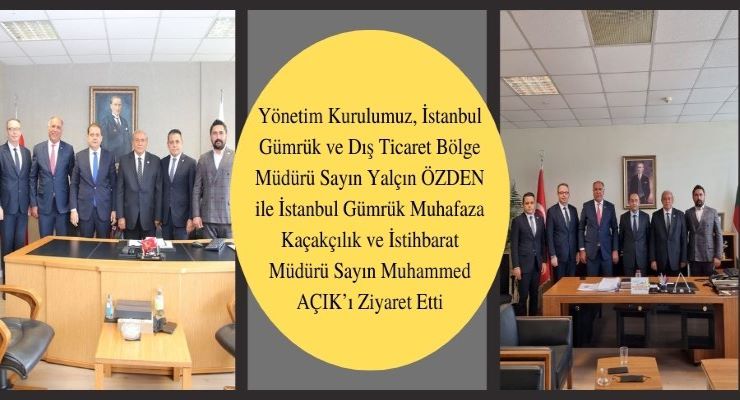 Yönetim Kurulumuzun İstanbul Gümrük ve Dış Ticaret Bölge Müdürlüğü Ziyareti Devamı için tıklayın...