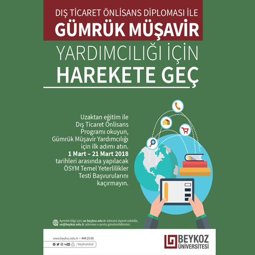 Derneğimiz, Beykoz Üniversitesi ile gerçekleştirdiği iş birliği ile Dış Ticaret önlisans eğitimi almak isteyen şirket çalışanlarınıza önemli bir fırsat sunuyor. Devamı için tıklayın...