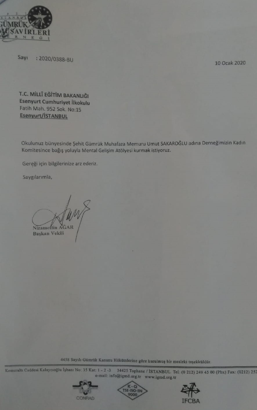 3) EK3: İGMD’nin Esenyurt Cumhuriyet İlkokulu Müdürlüğü’ne Yazısı