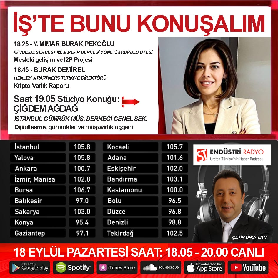 18.09.2023 Pazartesi günü saat:19.05’te Gazeteci Çetin ÜNSALAN’ın Endüstri