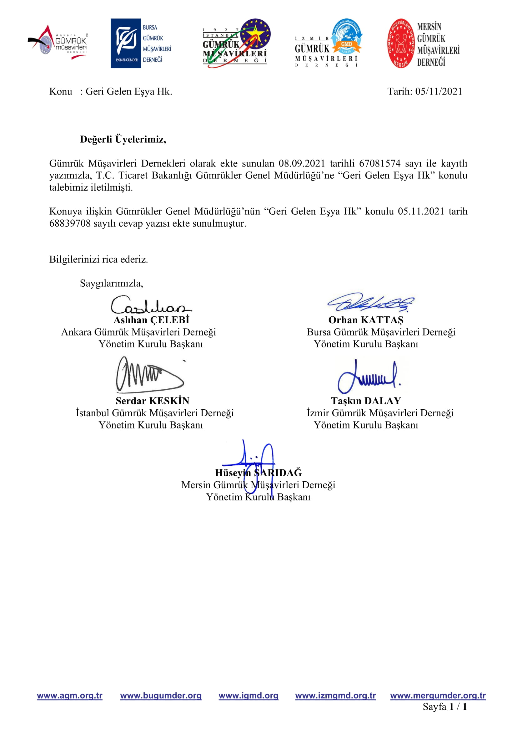 Gümrükler Genel Müdürlüğü'nün “İhracat Beyannamelerinin Kapatılması” konulu yazısı Devamı için tıklayın...
