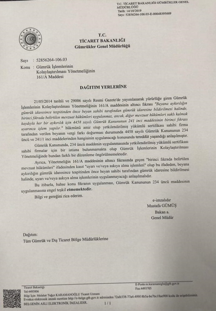 Gümrükler Genel Müdürlüğü'nün “İhracat Beyannamelerinin Kapatılması” konulu yazısı Devamı için tıklayın...