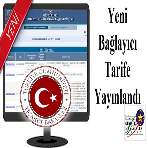 Gümrük ve Ticaret Bakanlığı tarafından yayımlanan Yeni Bağlayıcı Tarife Bilgisi 13.12.2018 Devamı için tıklayın...