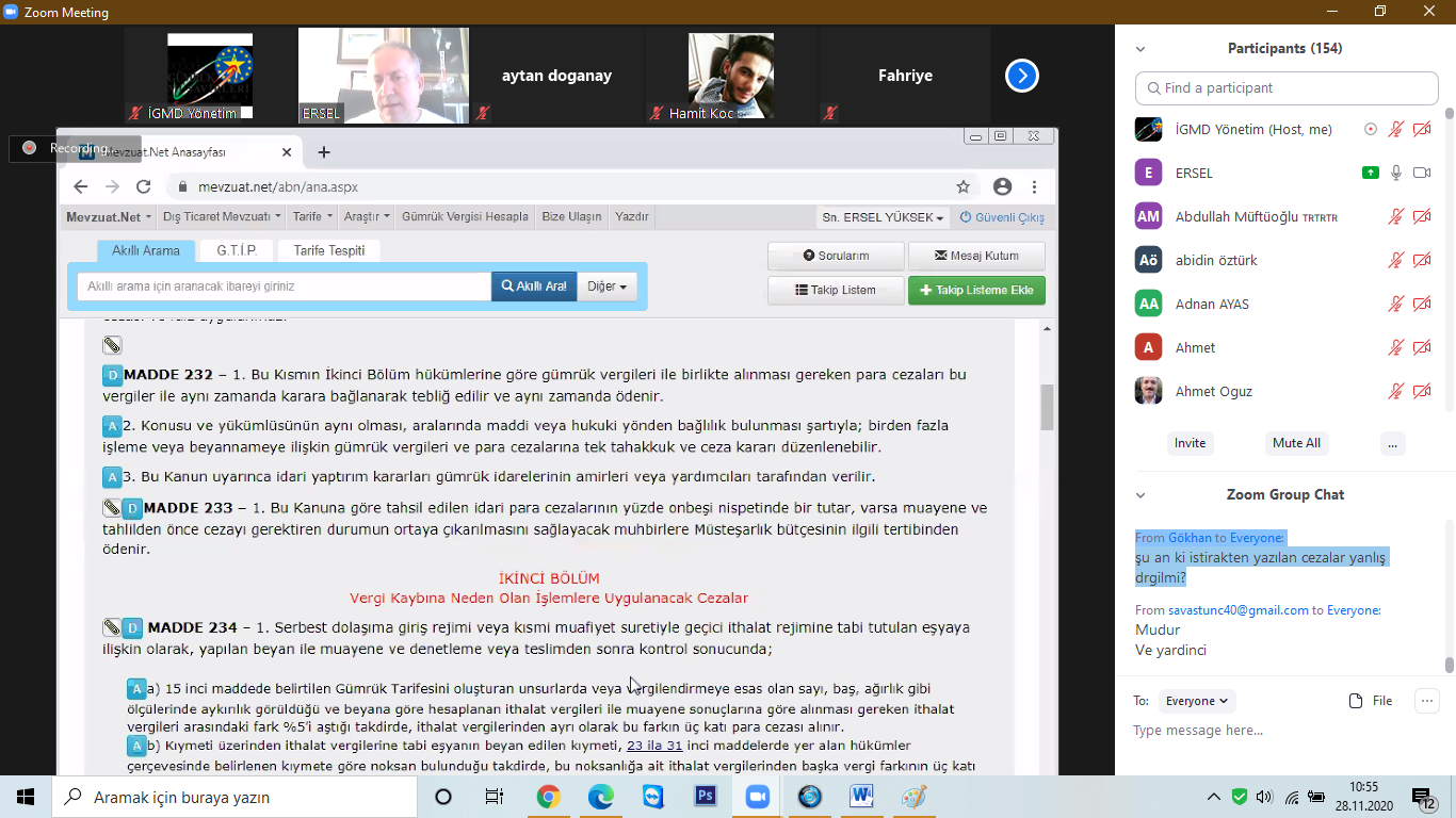adlandırdığımız online eğitimimiz Sayın Ersel YÜKSEK’in “Gümrük Kanununda