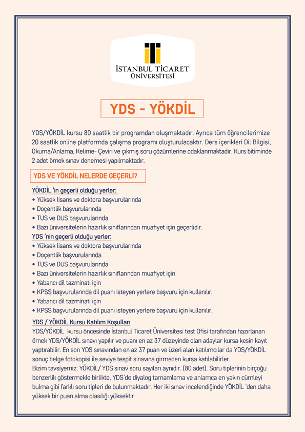 yapmış olduğu Genel İngilizce, YDS/YÖKDİL ve TOEFL eğitimleri 3 farklı