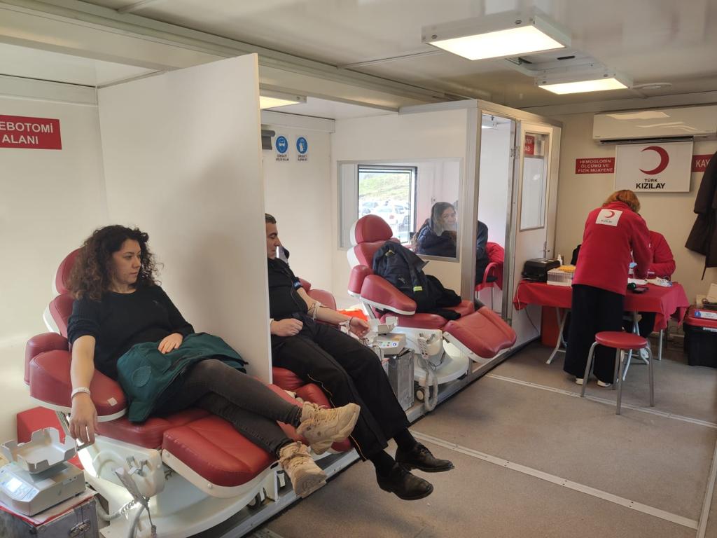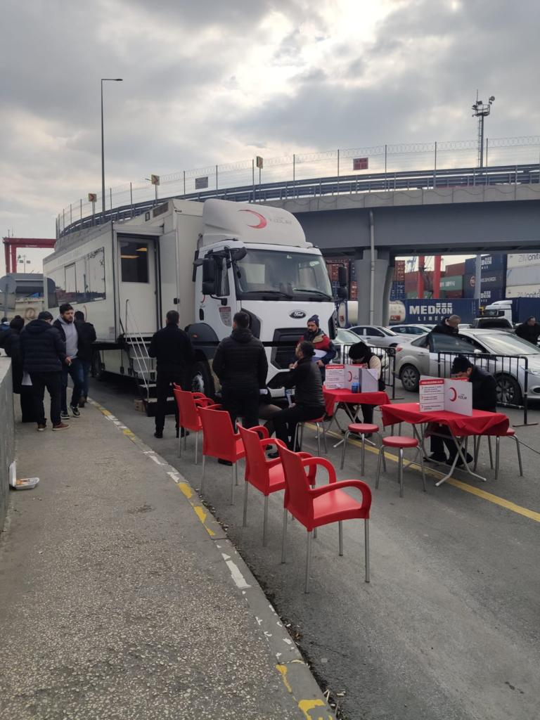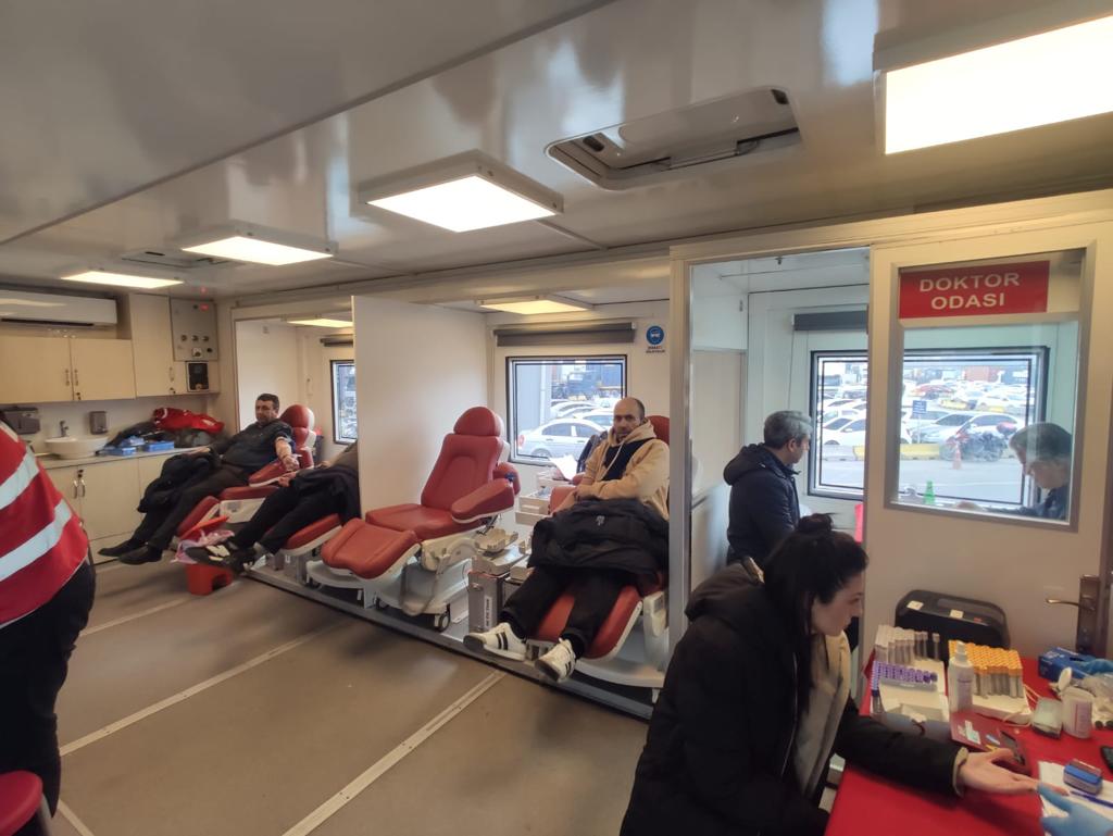 Kızılay tarafından Ambarlı Gümrük Müdürlüğü önünde düzenlenen kan bağışı