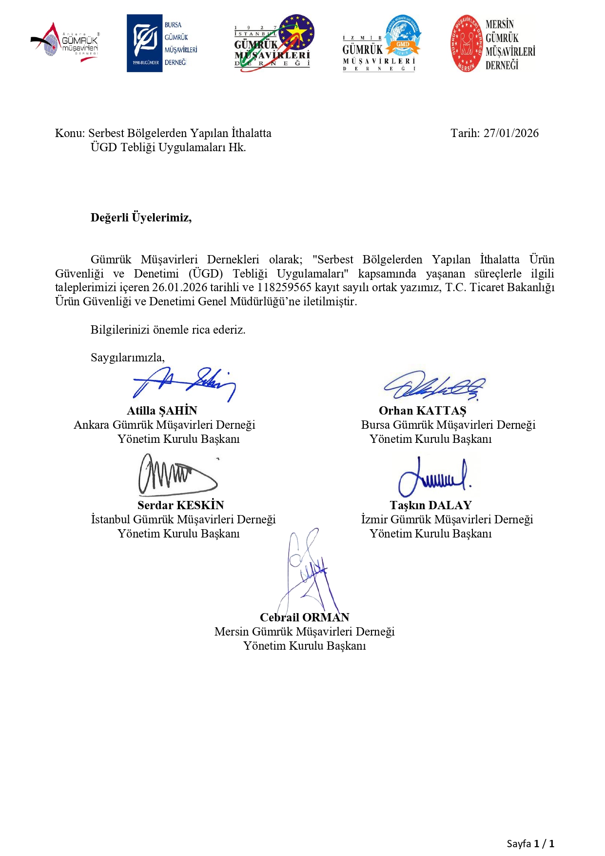 Gümrük Müşavir Derneklerinin Uluslararası Anlaşmalar ve Avrupa Birliği Genel Müdürlüğü’ne muhatap "Türkiye-Katar TEOA Kapsamında Elektronik EUR.1 Kullanımı" konulu yazısı Devamı için tıklayın...
